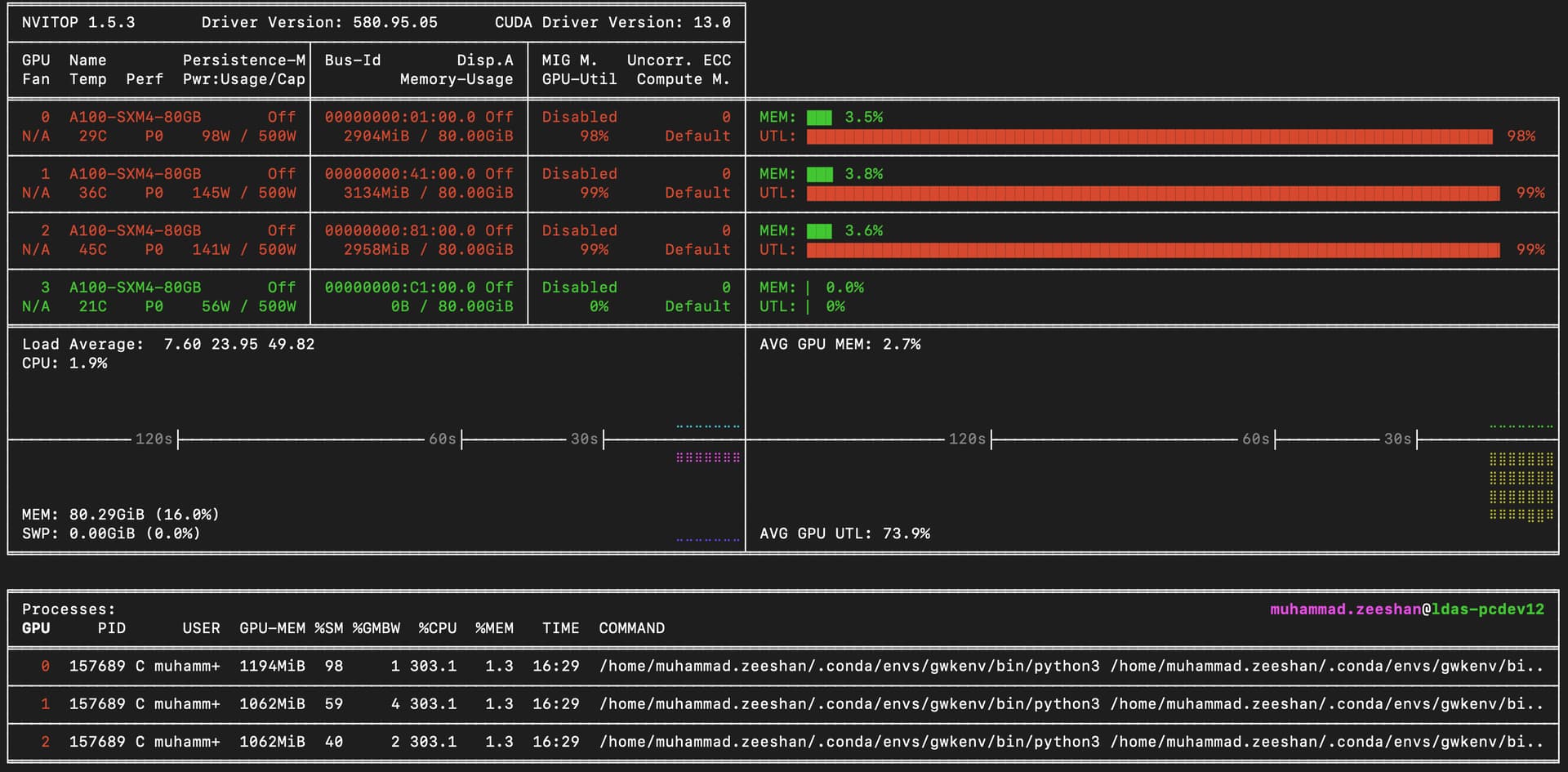 It is my understanding that if a NumPyro model starts running, it should use a GPU most of the time. However, contrary to my knowledge, it is using a CPU beyond expectation (can be seen in the screenshot). This unexpected behaviour goes throughout the run.